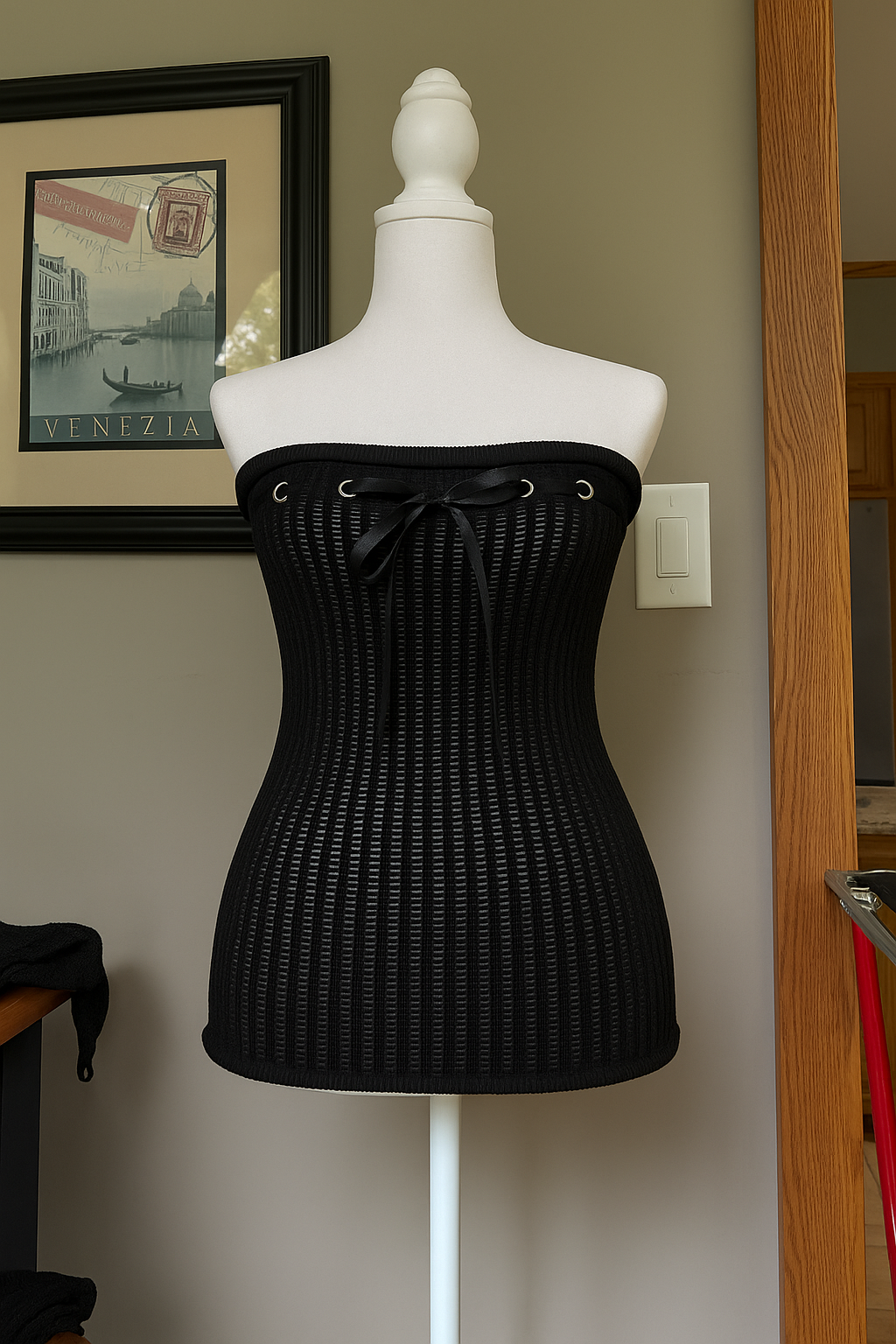 The Adjustable Morph Piece does everything the Morph Piece does, but with added structure. Made from the same lightweight, breathable knit, it features metal eyelets and ribbon ties so you can cinch, secure, and shape it to your body or mood.